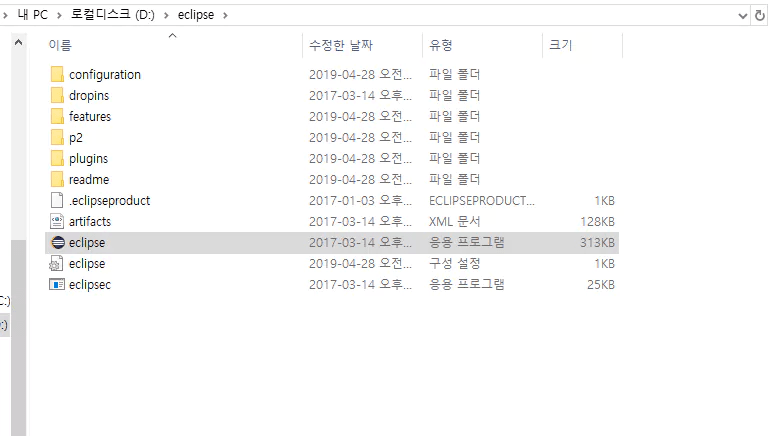 이 현상을 해결하기 위해 구글링을 해보면 eclipse.ini 파일 수정하라는 얘기가 제일 많이 나온다