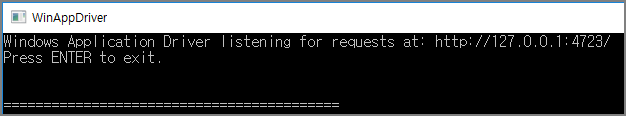 먼저 Winappdriver.exe를 실행해준다. 경로 C:\Program Files (x86)\Windows Application Driver\Winappdriver.exe