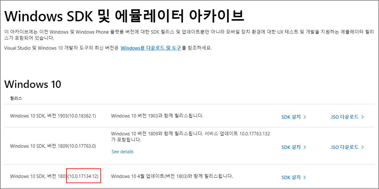 https://developer.microsoft.com/ko-kr/windows/downloads/sdk-archive