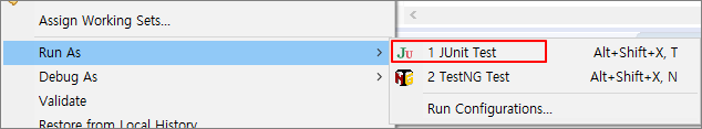 CalculatorTest.java 우클릭 > Run As > JUnit Test 클릭