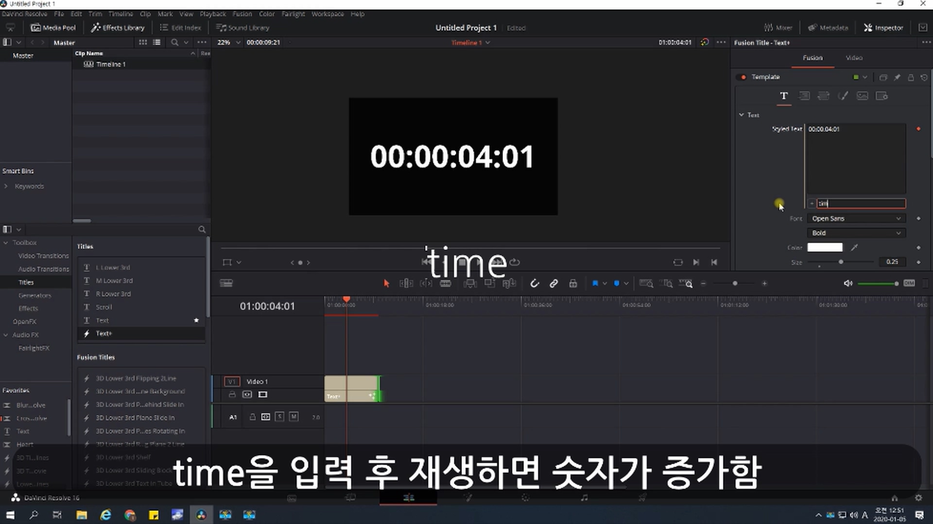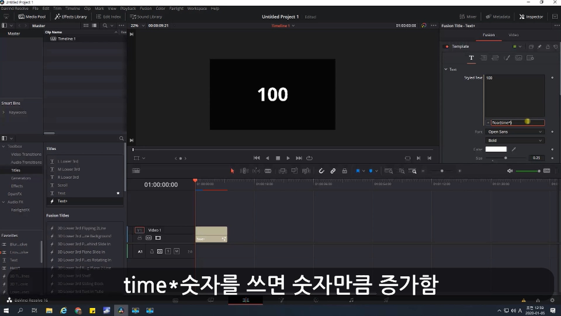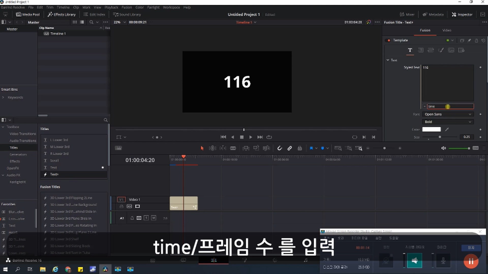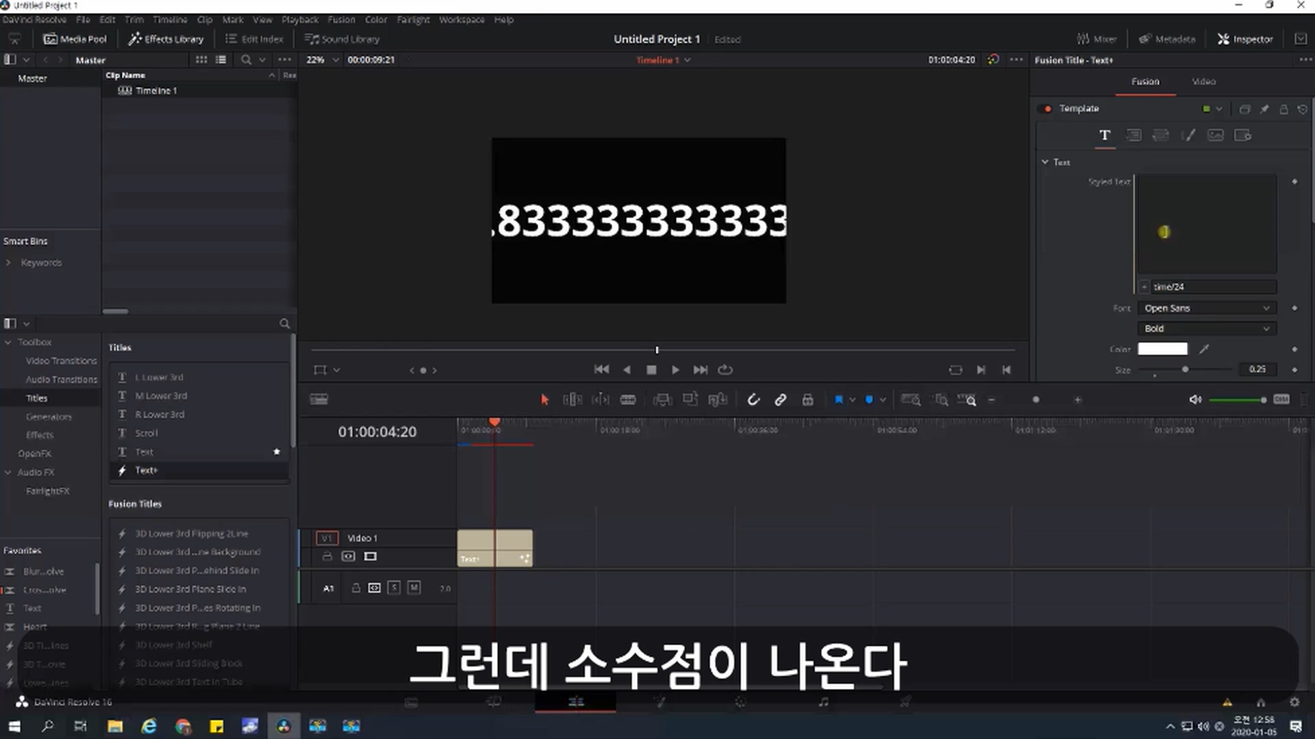 Text+ 를 사용한다. Fusion기반이기에 로딩이 좀 느리지만 렌더링 후 정상적으로 동작함
